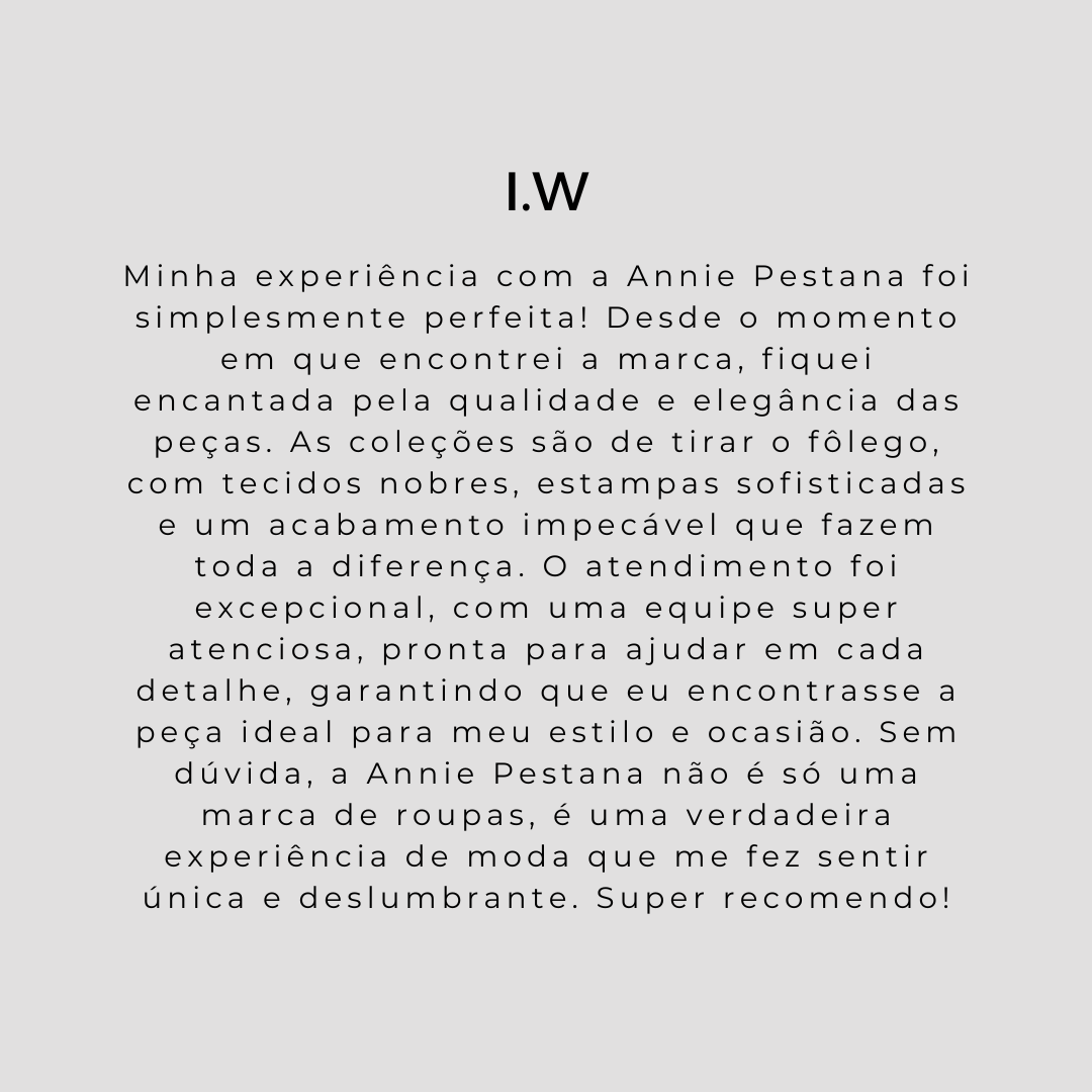 Nossos clientes são apaixonados pela qualidade, elegância e exclusividade de cada peça! 💖 Tecidos nobres, acabamentos impecáveis e um atendimento diferenciado fazem toda a diferença. Confira as experiências de quem já se encantou com a Annie Pestana!